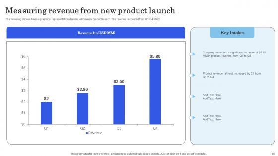 The following slide outlines a graphical representation of revenue from new product launch. The revenue is covered from Q1-Q4 2022. Want to ace your presentation in front of a live audience Our Measuring Revenue From New Product Launch Launching New Beverage Product Slides PDF can help you do that by engaging all the users towards you.. Slidegeeks experts have put their efforts and expertise into creating these impeccable powerpoint presentations so that you can communicate your ideas clearly. Moreover, all the templates are customizable, and easy-to-edit and downloadable. Use these for both personal and commercial use.