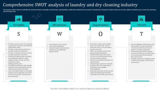 Do you have to make sure that everyone on your team knows about any specific topic I yes, then you should give Comprehensive Swot Analysis Of Laundry And Dry Laundromat Business Plan Go To Market Demonstration Pdf a try. Our experts have put a lot of knowledge and effort into creating this impeccable Comprehensive Swot Analysis Of Laundry And Dry Laundromat Business Plan Go To Market Demonstration Pdf You can use this template for your upcoming presentations, as the slides are perfect to represent even the tiniest detail. You can download these templates from the Slidegeeks website and these are easy to edit. So grab these today. Our Comprehensive Swot Analysis Of Laundry And Dry Laundromat Business Plan Go To Market Demonstration Pdf are topically designed to provide an attractive backdrop to any subject. Use them to look like a presentation pro.