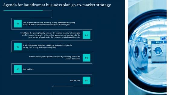 Boost your pitch with our creative Agenda For Laundromat Business Plan Go To Market Strategy Slides Pdf Deliver an awe-inspiring pitch that will mesmerize everyone. Using these presentation templates you will surely catch everyones attention. You can browse the ppts collection on our website. We have researchers who are experts at creating the right content for the templates. So you do not have to invest time in any additional work. Just grab the template now and use them. Our Agenda For Laundromat Business Plan Go To Market Strategy Slides Pdf are topically designed to provide an attractive backdrop to any subject. Use them to look like a presentation pro.