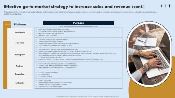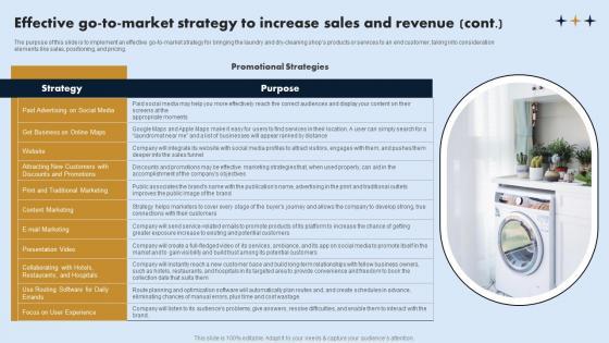 Slidegeeks is here to make your presentations a breeze with Effective Go To Market Strategy To On Demand Laundry Business Plan Introduction Pdf With our easy to use and customizable templates, you can focus on delivering your ideas rather than worrying about formatting. With a variety of designs to choose from, you are sure to find one that suits your needs. And with animations and unique photos, illustrations, and fonts, you can make your presentation pop. So whether you are giving a sales pitch or presenting to the board, make sure to check out Slidegeeks first. The purpose of this slide is to implement an effective go to market strategy for bringing the laundry and dry cleaning shops products or services to an end customer, taking into consideration elements like sales,positioning, and pricing.