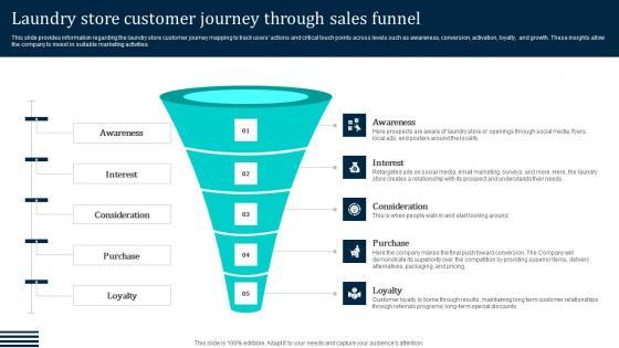 This slide provides information regarding the laundry store customer journey mapping to track users actions and critical touch points across levels such as awareness, conversion, activation, loyalty, and growth. These insights allow the company to invest in suitable marketing activities.Explore a selection of the finest Laundry Store Customer Journey Through Sales Funnel Laundromat Business Plan Go To Market Pictures Pdf here. With a plethora of professionally designed and pre-made slide templates, you can quickly and easily find the right one for your upcoming presentation. You can use our Laundry Store Customer Journey Through Sales Funnel Laundromat Business Plan Go To Market Pictures Pdf to effectively convey your message to a wider audience. Slidegeeks has done a lot of research before preparing these presentation templates. The content can be personalized and the slides are highly editable. Grab templates today from Slidegeeks. This slide provides information regarding the laundry store customer journey mapping to track users actions and critical touch points across levels such as awareness, conversion, activation, loyalty, and growth. These insights allow the company to invest in suitable marketing activities.