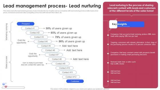 This slide covers the lead nurturing process. It also includes the key insights such as companies with lead nurturing produce better leads at low prices, increased conversion rates by targeting consumers with relevant information, etc. Find a pre-designed and impeccable Lead Management Process Lead Distribution Various Techniques For Managing Mockup PDF. The templates can ace your presentation without additional effort. You can download these easy-to-edit presentation templates to make your presentation stand out from others. So, what are you waiting for Download the template from Slidegeeks today and give a unique touch to your presentation. This slide covers the lead nurturing process. It also includes the key insights such as companies with lead nurturing produce better leads at low prices, increased conversion rates by targeting consumers with relevant information, etc.