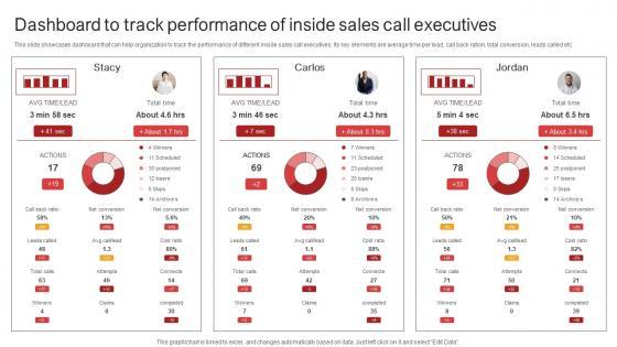 This slide showcases dashboard that can help organization to track the performance of different inside sales call executives. Its key elements are average time per lead, call back ration, total conversion, leads called etc. Slidegeeks has constructed Phone Sales Strategy To Drive Leads Dashboard To Track Performance Strategy SS V after conducting extensive research and examination. These presentation templates are constantly being generated and modified based on user preferences and critiques from editors. Here, you will find the most attractive templates for a range of purposes while taking into account ratings and remarks from users regarding the content. This is an excellent jumping-off point to explore our content and will give new users an insight into our top-notch PowerPoint Templates. This slide showcases dashboard that can help organization to track the performance of different inside sales call executives. Its key elements are average time per lead, call back ration, total conversion, leads called etc.