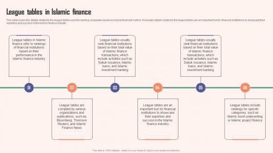 This slide covers the details related to the league tables used for ranking companies based on Islamic financial metrics. It includes details related to the league tables are an important tool for financial institutions to showcase their expertise and success in the Islamic finance industry. Do you have to make sure that everyone on your team knows about any specific topic I yes, then you should give League Tables In Islamic Finance Comprehensive Guide Islamic Inspiration PDF a try. Our experts have put a lot of knowledge and effort into creating this impeccable League Tables In Islamic Finance Comprehensive Guide Islamic Inspiration PDF. You can use this template for your upcoming presentations, as the slides are perfect to represent even the tiniest detail. You can download these templates from the Slidegeeks website and these are easy to edit. So grab these today This slide covers the details related to the league tables used for ranking companies based on Islamic financial metrics. It includes details related to the league tables are an important tool for financial institutions to showcase their expertise and success in the Islamic finance industry.