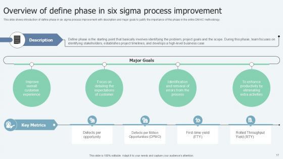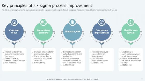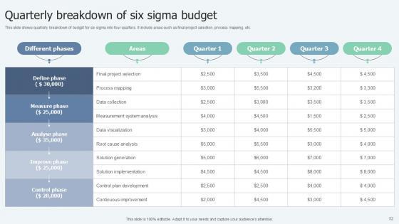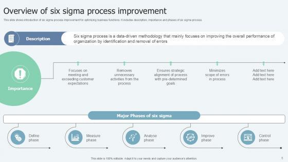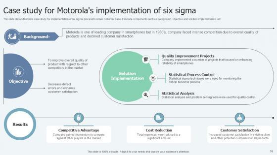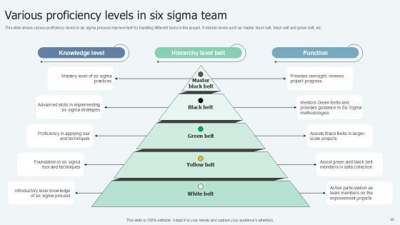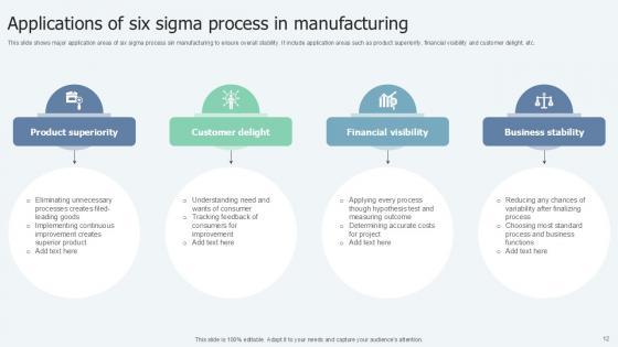 You will save yourself your energy and hours of time when you choose to use this impactful PowerPoint Deck. This Lean Six Sigma in Manufacturing Process Ppt Presentation has been tailor-made to your business needs which ensures that you will always be prepared for that next meeting. Worry can not touch you when you present in your area of expertise using this PPT Template Bundle. With a modern design and easy to follow structure, this PowerPoint Presentation has seventy two-slides, which ensures that you can cover you need to without much work. Create your next presentation using this PPT Theme to deliver a memorable performance. Our Lean Six Sigma in Manufacturing Process Ppt Presentation are topically designed to provide an attractive backdrop to any subject. Use them to look like a presentation pro.