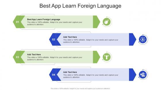 Presenting our innovatively-designed set of slides titled Best App Learn Foreign Language In Powerpoint And Google Slides Cpb. This completely editable PowerPoint graphic exhibits Best App Learn Foreign Language that will help you convey the message impactfully. It can be accessed with Google Slides and is available in both standard screen and widescreen aspect ratios. Apart from this, you can download this well-structured PowerPoint template design in different formats like PDF, JPG, and PNG. So, click the download button now to gain full access to this PPT design. Our Best App Learn Foreign Language In Powerpoint And Google Slides Cpb are topically designed to provide an attractive backdrop to any subject. Use them to look like a presentation pro.