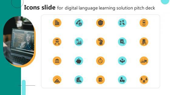 Introducing our well designed Icons Slide For Digital Language Learning Solution Pitch Deck set of slides. The slide displays editable icons to enhance your visual presentation. The icons can be edited easily. So customize according to your business to achieve a creative edge. Download and share it with your audience. Our Icons Slide For Digital Language Learning Solution Pitch Deck are topically designed to provide an attractive backdrop to any subject. Use them to look like a presentation pro.