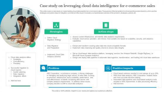 This slide covers a case study on implementing cloud data analytics for e commerce sales. The purpose of this template is to showcase the problem faced by a firm and the strategies and action steps to mitigate e commerce in the cloud. It includes a comprehensive overview of the problem, strategies, actions, etc. Pitch your topic with ease and precision using this Case Study On Leveraging Cloud Data Intelligence For E Commerce Sales Summary Pdf. This layout presents information on Strategies, Positive Impacts, Cost Efficiency. It is also available for immediate download and adjustment. So, changes can be made in the color, design, graphics or any other component to create a unique layout. This slide covers a case study on implementing cloud data analytics for e commerce sales. The purpose of this template is to showcase the problem faced by a firm and the strategies and action steps to mitigate e commerce in the cloud. It includes a comprehensive overview of the problem, strategies, actions, etc.