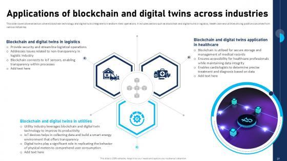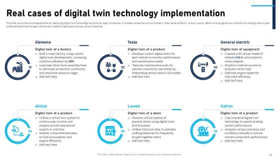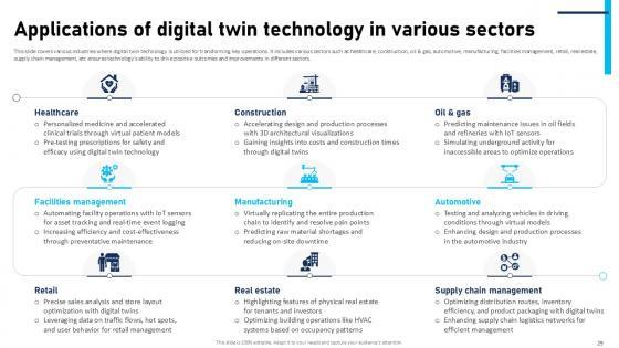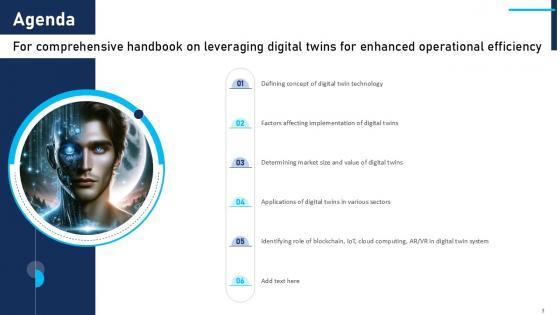 Use this Comprehensive Handbook On Leveraging Digital Twins For Enhanced Operational Efficiency BCT CD V to ensure the business world gets to know you as a presentation expert with tremendous recall value. With its focus on providing the worlds best designs to highlight business ideas that have the potential to change the world, this PPT Template is sure to win you clients. The complete deck in fourty three slides is a compendium of information, structured in a manner that provides the best framework for a presentation. Use this completely editable and customizable presentation to make an impact and improve your order book. Download now. Our Comprehensive Handbook On Leveraging Digital Twins For Enhanced Operational Efficiency BCT CD V are topically designed to provide an attractive backdrop to any subject. Use them to look like a presentation pro.