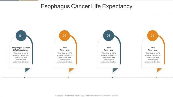 Presenting our innovatively designed set of slides titled Esophagus Cancer Life Expectancy In Powerpoint And Google Slides Cpb. This completely editable PowerPoint graphic exhibits Esophagus Cancer Life Expectancy that will help you convey the message impactfully. It can be accessed with Google Slides and is available in both standard screen and widescreen aspect ratios. Apart from this, you can download this well structured PowerPoint template design in different formats like PDF, JPG, and PNG. So, click the download button now to gain full access to this PPT design. Our Esophagus Cancer Life Expectancy In Powerpoint And Google Slides Cpb are topically designed to provide an attractive backdrop to any subject. Use them to look like a presentation pro.