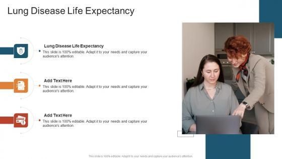 Presenting our innovatively designed set of slides titled Lung Disease Life Expectancy In Powerpoint And Google Slides Cpb. This completely editable PowerPoint graphic exhibits Lung Disease Life Expectancy that will help you convey the message impactfully. It can be accessed with Google Slides and is available in both standard screen and widescreen aspect ratios. Apart from this, you can download this well-structured PowerPoint template design in different formats like PDF, JPG, and PNG. So, click the download button now to gain full access to this PPT design. Our Lung Disease Life Expectancy In Powerpoint And Google Slides Cpb are topically designed to provide an attractive backdrop to any subject. Use them to look like a presentation pro.