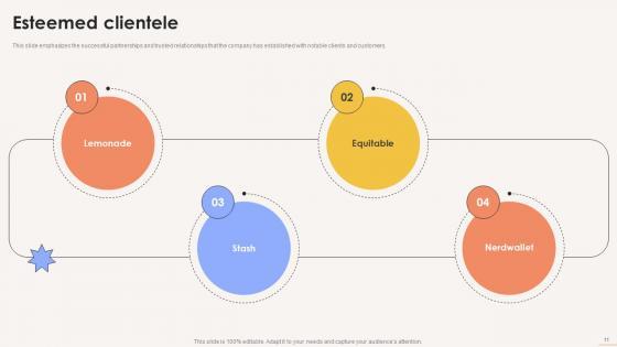 This slide emphasizes the successful partnerships and trusted relationships that the company has established with notable clients and customers. Get a simple yet stunning designed Esteemed Clientele Term Life Insurance Platform Investor Funding Elevator Pitch Deck. It is the best one to establish the tone in your meetings. It is an excellent way to make your presentations highly effective. So, download this PPT today from Slidegeeks and see the positive impacts. Our easy-to-edit Esteemed Clientele Term Life Insurance Platform Investor Funding Elevator Pitch Deck can be your go-to option for all upcoming conferences and meetings. So, what are you waiting for Grab this template today. This slide emphasizes the successful partnerships and trusted relationships that the company has established with notable clients and customers.