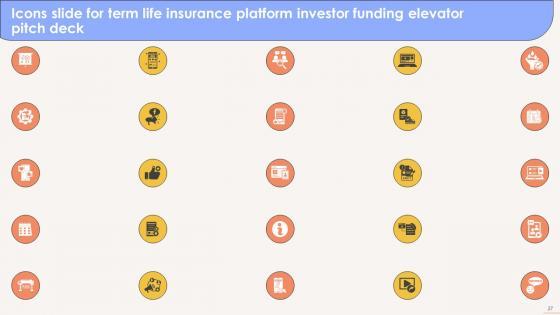Help your business to create an attention-grabbing presentation using our Icons Slide For Term Life Insurance Platform Investor Funding Elevator Pitch Deck set of slides. The slide contains innovative icons that can be flexibly edited. Choose this Icons Slide For Term Life Insurance Platform Investor Funding Elevator Pitch Deck template to create a satisfactory experience for your customers. Go ahead and click the download button. Our Icons Slide For Term Life Insurance Platform Investor Funding Elevator Pitch Deck are topically designed to provide an attractive backdrop to any subject. Use them to look like a presentation pro.