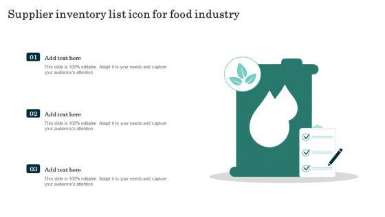 Pitch your topic with ease and precision using this Supplier Inventory List Icon For Food Industry Brochure Pdf. This layout presents information on Supplier Inventory List, Food Industry. It is also available for immediate download and adjustment. So, changes can be made in the color, design, graphics or any other component to create a unique layout. Our Supplier Inventory List Icon For Food Industry Brochure Pdf are topically designed to provide an attractive backdrop to any subject. Use them to look like a presentation pro.