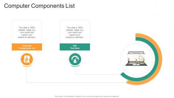Presenting our innovatively-designed set of slides titled Computer Components List In Powerpoint And Google Slides Cpb. This completely editable PowerPoint graphic exhibits Computer Components List that will help you convey the message impactfully. It can be accessed with Google Slides and is available in both standard screen and widescreen aspect ratios. Apart from this, you can download this well-structured PowerPoint template design in different formats like PDF, JPG, and PNG. So, click the download button now to gain full access to this PPT design. Our Computer Components List In Powerpoint And Google Slides Cpb are topically designed to provide an attractive backdrop to any subject. Use them to look like a presentation pro.