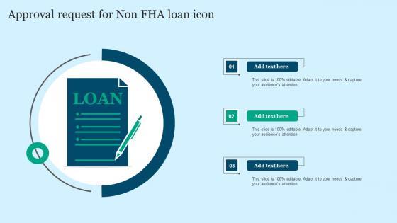 Showcasing this set of slides titled Approval Request For Non FHA Loan Icon Infographics Pdf. The topics addressed in these templates are Approval Request, Non FHA, Loan. All the content presented in this PPT design is completely editable. Download it and make adjustments in color, background, font etc. as per your unique business setting. Our Approval Request For Non FHA Loan Icon Infographics Pdf are topically designed to provide an attractive backdrop to any subject. Use them to look like a presentation pro.