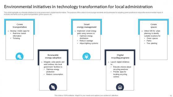 Share a great deal of information on the topic by deploying this Technology Transformation In Local Administration Ppt Powerpoint Presentation Complete Deck With Slides. Support your ideas and thought process with this prefabricated set. It includes a set of twenty one slides, all fully modifiable and editable. Each slide can be restructured and induced with the information and content of your choice. You can add or remove large content boxes as well, to make this PPT slideshow more personalized. Its high-quality graphics and visuals help in presenting a well-coordinated pitch. This PPT template is also a resourceful tool to take visual cues from and implement the best ideas to help your business grow and expand. The main attraction of this well-formulated deck is that everything is editable, giving you the freedom to adjust it to your liking and choice. Changes can be made in the background and theme as well to deliver an outstanding pitch. Therefore, click on the download button now to gain full access to this multifunctional set. Our Technology Transformation In Local Administration Ppt Powerpoint Presentation Complete Deck With Slides are topically designed to provide an attractive backdrop to any subject. Use them to look like a presentation pro.