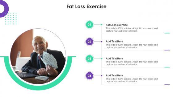 Introducing our well-designed Fat Loss Exercise In Powerpoint And Google Slides Cpb. This PowerPoint design presents information on topics like Fat Loss Exercise. As it is predesigned it helps boost your confidence level. It also makes you a better presenter because of its high-quality content and graphics. This PPT layout can be downloaded and used in different formats like PDF, PNG, and JPG. Not only this, it is available in both Standard Screen and Widescreen aspect ratios for your convenience. Therefore, click on the download button now to persuade and impress your audience. Our Fat Loss Exercise In Powerpoint And Google Slides Cpb are topically designed to provide an attractive backdrop to any subject. Use them to look like a presentation pro.