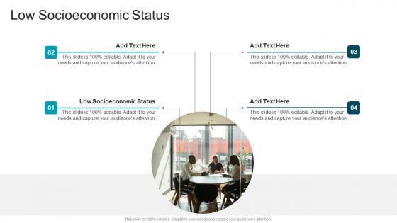 Introducing our well-designed Low Socioeconomic Status In Powerpoint And Google Slides Cpb. This PowerPoint design presents information on topics like Low Socioeconomic Status. As it is predesigned it helps boost your confidence level. It also makes you a better presenter because of its high-quality content and graphics. This PPT layout can be downloaded and used in different formats like PDF, PNG, and JPG. Not only this, it is available in both Standard Screen and Widescreen aspect ratios for your convenience. Therefore, click on the download button now to persuade and impress your audience. Our Low Socioeconomic Status In Powerpoint And Google Slides Cpb are topically designed to provide an attractive backdrop to any subject. Use them to look like a presentation pro.