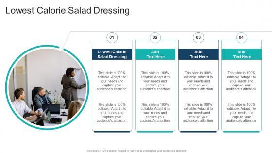 Introducing our well designed Lowest Calorie Salad Dressing In Powerpoint And Google Slides Cpb. This PowerPoint design presents information on topics like Lowest Calorie Salad Dressing. As it is predesigned it helps boost your confidence level. It also makes you a better presenter because of its high quality content and graphics. This PPT layout can be downloaded and used in different formats like PDF, PNG, and JPG. Not only this, it is available in both Standard Screen and Widescreen aspect ratios for your convenience. Therefore, click on the download button now to persuade and impress your audience. Our Lowest Calorie Salad Dressing In Powerpoint And Google Slides Cpb are topically designed to provide an attractive backdrop to any subject. Use them to look like a presentation pro.