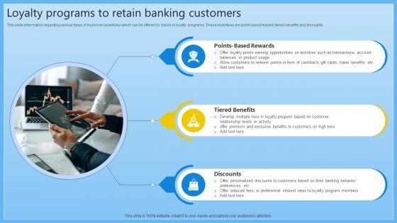 This slide information regarding various types of customer incentives which can be offered by banks in loyalty programs. These incentives are point based reward, tiered benefits and discounts. Do you know about Slidesgeeks Loyalty Programs To Retain Banking Customers Complete Guide On Managing Banking Fin SS V These are perfect for delivering any kind od presentation. Using it, create PowerPoint presentations that communicate your ideas and engage audiences. Save time and effort by using our pre-designed presentation templates that are perfect for a wide range of topic. Our vast selection of designs covers a range of styles, from creative to business, and are all highly customizable and easy to edit. Download as a PowerPoint template or use them as Google Slides themes. This slide information regarding various types of customer incentives which can be offered by banks in loyalty programs. These incentives are point based reward, tiered benefits and discounts.