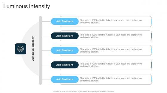 Introducing our well designed Luminous Intensity In Powerpoint And Google Slides Cpb. This PowerPoint design presents information on topics like Luminous Intensity. As it is predesigned it helps boost your confidence level. It also makes you a better presenter because of its high-quality content and graphics. This PPT layout can be downloaded and used in different formats like PDF, PNG, and JPG. Not only this, it is available in both Standard Screen and Widescreen aspect ratios for your convenience. Therefore, click on the download button now to persuade and impress your audience. Our Luminous Intensity In Powerpoint And Google Slides Cpb are topically designed to provide an attractive backdrop to any subject. Use them to look like a presentation pro.