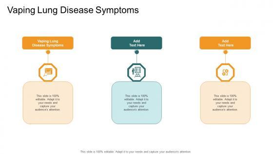 Presenting our innovatively designed set of slides titled Vaping Lung Disease Symptoms In Powerpoint And Google Slides Cpb This completely editable PowerPoint graphic exhibits Vaping Lung Disease Symptoms that will help you convey the message impactfully. It can be accessed with Google Slides and is available in both standard screen and widescreen aspect ratios. Apart from this, you can download this well structured PowerPoint template design in different formats like PDF, JPG, and PNG. So, click the download button now to gain full access to this PPT design. Our Vaping Lung Disease Symptoms In Powerpoint And Google Slides Cpb are topically designed to provide an attractive backdrop to any subject. Use them to look like a presentation pro.