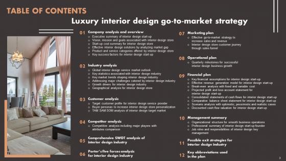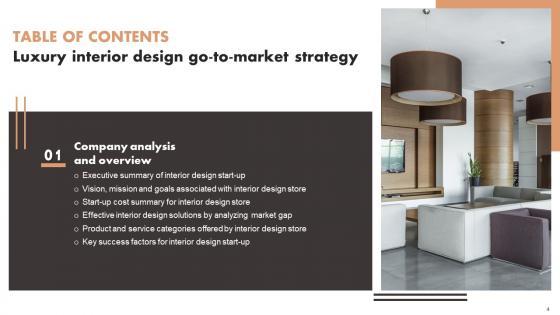 You can survive and sail through cut throat competition if you have the right skills and products at hand. If a business plan is on your upcoming agenda, then it will not be wise of you to proceed in absence of our well designed Luxury Interior Design Go To Market Strategy document. Our business plan word document swears by in depth detailing and thus answers every question that may hit you or your audience at any point of time. Whats more, are the multi fold benefits that our word document offers. Made up of high resolution graphics, this document does not hamper when projected on a wide screen. Being pre designed and thoroughly editable this ready made business plan saves a lot of the presenters time and efforts which otherwise get wasted in designing the business plan from scratch. We make our business plan word documents available to you keeping in mind the competitive edge. Join your hands with us now. Our Luxury Interior Design Go To Market Strategy are topically designed to provide an attractive backdrop to any subject. Use them to look like a presentation pro.