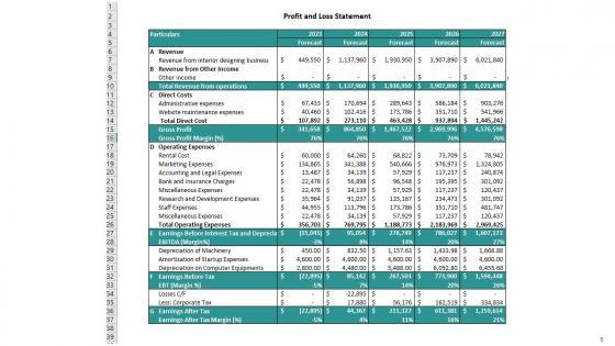 The slides provide a glimpse of the projected profit and loss statement to visualize interior design stores financial performance for the next five years. The key components are total revenue from operations, gross profit, EBITDA, etc. Present like a pro with Projected Profit And Loss Account Statement For Interior Design Luxury Interior Design Topics Pdf Create beautiful presentations together with your team, using our easy-to-use presentation slides. Share your ideas in real-time and make changes on the fly by downloading our templates. So whether you are in the office, on the go, or in a remote location, you can stay in sync with your team and present your ideas with confidence. With Slidegeeks presentation got a whole lot easier. Grab these presentations today. The slides provide a glimpse of the projected profit and loss statement to visualize interior design stores financial performance for the next five years. The key components are total revenue from operations, gross profit, EBITDA, etc.