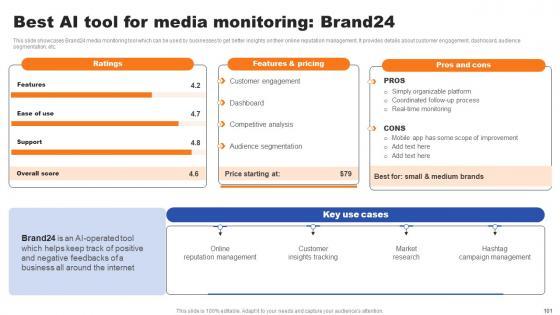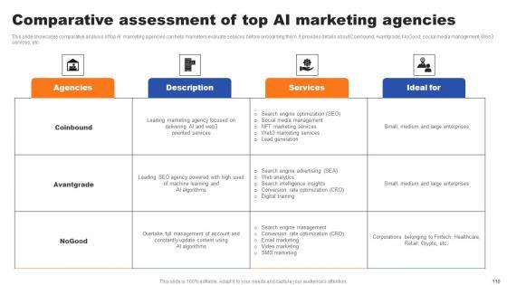 This AI Marketing Strategies Using Machine Learning To Increase ROI Ppt PowerPoint Presentation Complete Deck is a primer on how to capitalize on business opportunities through planning, innovation, and market intelligence. The content-ready format of the complete deck will make your job as a decision-maker a lot easier. Use this ready-made PowerPoint Template to help you outline an extensive and legible plan to capture markets and grow your company on the right path, at an exponential pace. What is even more amazing is that this presentation is completely editable and 100 percent customizable. This one hundred ninteen slide complete deck helps you impress a roomful of people with your expertise in business and even presentation. Craft such a professional and appealing presentation for that amazing recall value. Download now. Our AI Marketing Strategies Using Machine Learning To Increase ROI Ppt PowerPoint Presentation Complete Deck are topically designed to provide an attractive backdrop to any subject. Use them to look like a presentation pro.