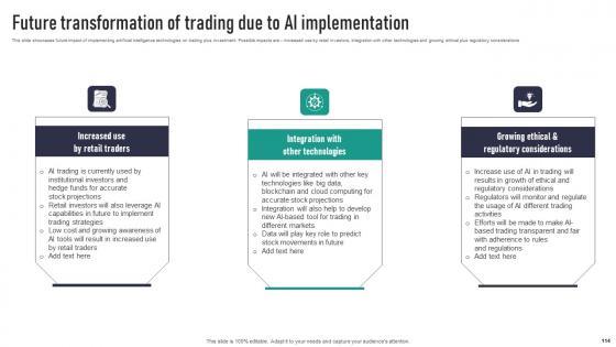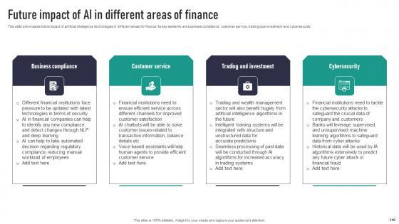 This Automating Finance Using Artificial Intelligence And Machine Learning Complete Deck is a primer on how to capitalize on business opportunities through planning, innovation, and market intelligence. The content-ready format of the complete deck will make your job as a decision-maker a lot easier. Use this ready-made PowerPoint Template to help you outline an extensive and legible plan to capture markets and grow your company on the right path, at an exponential pace. What is even more amazing is that this presentation is completely editable and 100 percent customizable. This one hundred nineteen slide complete deck helps you impress a roomful of people with your expertise in business and even presentation. Craft such a professional and appealing presentation for that amazing recall value. Download now. Our Automating Finance Using Artificial Intelligence And Machine Learning Complete Deck are topically designed to provide an attractive backdrop to any subject. Use them to look like a presentation pro.