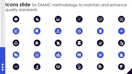 Help your business to create an attention-grabbing presentation using our Icons Slide For DMAIC Methodology To Maintain And Enhance Quality PPT Presentation set of slides. The slide contains innovative icons that can be flexibly edited. Choose this Icons Slide For DMAIC Methodology To Maintain And Enhance Quality PPT Presentation template to create a satisfactory experience for your customers. Go ahead and click the download button. Our Icons Slide For DMAIC Methodology To Maintain And Enhance Quality PPT Presentation are topically designed to provide an attractive backdrop to any subject. Use them to look like a presentation pro.