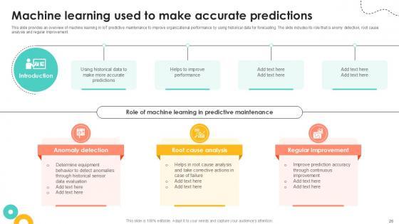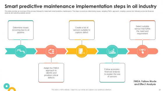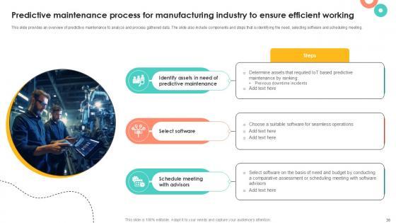 This slide showcases procedure of establishing predictive maintenance in manufacturing plants. It includes various stages such as assessing previous data and identifying critical assets, installing IoT sensors, implementing equipment parameters, set up action items for triggered alerts and ensuring to have proper systems in place.Pitch your topic with ease and precision using this Key Steps To Implement Big Data Predictive Maintenance In Manufacturing Diagrams Pdf This layout presents information on Implement Equipment Parameters, Ensure Proper, Systems Place It is also available for immediate download and adjustment. So, changes can be made in the color, design, graphics or any other component to create a unique layout. This slide showcases procedure of establishing predictive maintenance in manufacturing plants. It includes various stages such as assessing previous data and identifying critical assets, installing IoT sensors, implementing equipment parameters, set up action items for triggered alerts and ensuring to have proper systems in place.