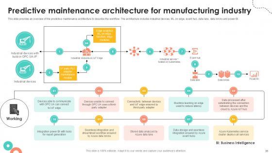 This slide demonstrates usage of artificial intelligence for predictive maintenance of production processes. It provides information about AI application, historical data, machine learning, notifications, sensors, etc. Do you have to make sure that everyone on your team knows about any specific topic I yes, then you should give Implementing Robotic Process Using Ai For Predictive Maintenance Of Manufacturing Processes Brochure PDF a try. Our experts have put a lot of knowledge and effort into creating this impeccable Implementing Robotic Process Using Ai For Predictive Maintenance Of Manufacturing Processes Brochure PDF. You can use this template for your upcoming presentations, as the slides are perfect to represent even the tiniest detail. You can download these templates from the Slidegeeks website and these are easy to edit. So grab these today.