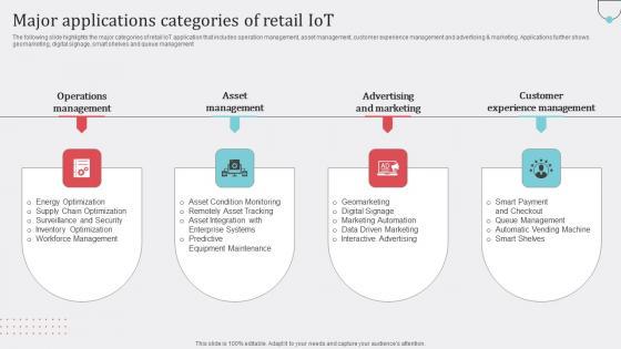Major Applications Categories Of Retail IoT Guide For Retail IoT Solutions Analysis Professional Pdf