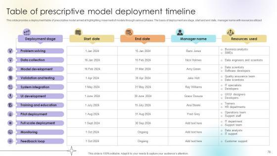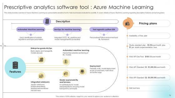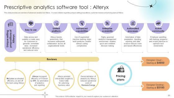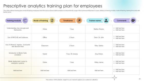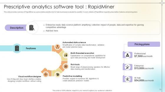 This ready-to-present presentation deck will save you time and resources in drafting a comprehensive presentation for your meeting next Monday. Our designer put their strenuous efforts into preparing this high-quality seventy six-templates enclosing deck. This Predictive Analytics For Empowering Data Driven Decision Making Complete Deck is ideal for sharing your leadership thoughts and unique ideas in an easy-to-understand manner. Eye-catching visuals of this PowerPoint Set will enable you to connect strongly with the viewers and explore the delightful side of audience interaction. All slides of this template bundle are entirely customizable and perfect for cater to the needs of the business. Download this PPT set from the link below. Our Predictive Analytics For Empowering Data Driven Decision Making Complete Deck are topically designed to provide an attractive backdrop to any subject. Use them to look like a presentation pro.