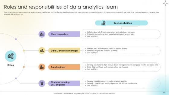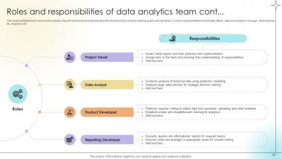 Pitch your topic with ease and precision using this responsibility of data analytics team with decision making ppt powerpoint presentation file outfit pdf. This layout presents information on business head, domain specialists, database administrator, analyst, responsibility. It is also available for immediate download and adjustment. So, changes can be made in the color, design, graphics or any other component to create a unique layout.