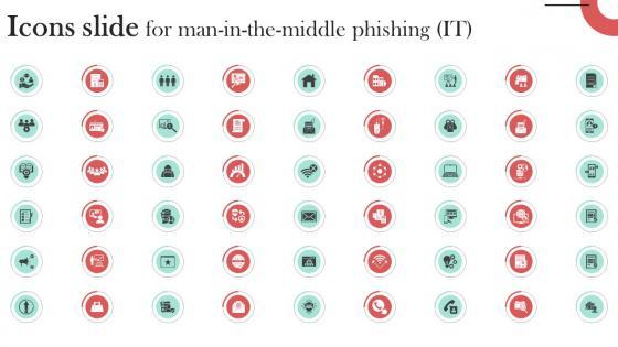 Retrieve professionally designed Icons Slide For Man In The Middle Phishing IT Ppt Infographics to effectively convey your message and captivate your listeners. Save time by selecting pre-made slideshows that are appropriate for various topics, from business to educational purposes. These themes come in many different styles, from creative to corporate, and all of them are easily adjustable and can be edited quickly. Access them as PowerPoint templates or as Google Slides themes. You do not have to go on a hunt for the perfect presentation because Slidegeeks got you covered from everywhere. Our Icons Slide For Man In The Middle Phishing IT Ppt Infographics are topically designed to provide an attractive backdrop to any subject. Use them to look like a presentation pro.