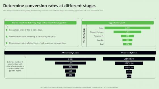 This slide provides information regarding the addressing conversion rates at different stages and estimating opportunities with value associated to them. Find a pre-designed and impeccable Determine Conversion Rates At Different Stages Managing Sales Pipeline Health Structure PDF. The templates can ace your presentation without additional effort. You can download these easy-to-edit presentation templates to make your presentation stand out from others. So, what are you waiting for Download the template from Slidegeeks today and give a unique touch to your presentation.