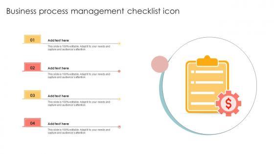 Showcasing this set of slides titled Business Process Management Checklist Icon Guidelines Pdf. The topics addressed in these templates are Business Process, Management Checklist Icon. All the content presented in this PPT design is completely editable. Download it and make adjustments in color, background, font etc. as per your unique business setting. Our Business Process Management Checklist Icon Guidelines Pdf are topically designed to provide an attractive backdrop to any subject. Use them to look like a presentation pro.