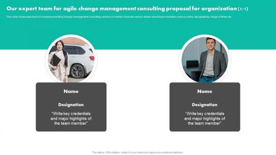 This slide showcases team of company providing change management consulting services in market. It include various details about team members such as name, designations, image of driver etc. Take your presentations to the next level with our Our Expert Team For Agile Change Management Consulting Proposal For Organization Rules PDF template. With its sleek design and seamless editing features, this single-slide PPT template is a game-changer for professionals who want to make an impact. Impress your audience with stunning visuals and engaging content that will capture their attention from start to finish. Get your hands on our template and elevate your presentations to new heights. This slide showcases team of company providing change management consulting services in market. It include various details about team members such as name, designations, image of driver etc.