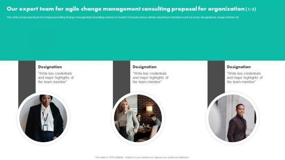 This slide showcases team of company providing change management consulting services in market. It include various details about team members such as name, designations, image of driver etc. Take your presentations to the next level with our Our Expert Team For Organization Leadership Change Management Consulting Proposal Graphics PDF template. With its sleek design and seamless editing features, this single-slide PPT template is a game-changer for professionals who want to make an impact. Impress your audience with stunning visuals and engaging content that will capture their attention from start to finish. Get your hands on our template and elevate your presentations to new heights.