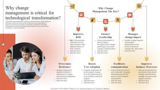 This slide represents the importance of the changes implemented to introduce new technologies and systems in the organization to improve business processes. It includes importance of change management in technological transformation such as overcomes resistance, improves ROI etc. Do you have an important presentation coming up Are you looking for something that will make your presentation stand out from the rest Look no further than Why Change Management Is Critical Technological Adapting To Technological Change Infographics Pdf. With our professional designs, you can trust that your presentation will pop and make delivering it a smooth process. And with Slidegeeks, you can trust that your presentation will be unique and memorable. So why wait Grab Why Change Management Is Critical Technological Adapting To Technological Change Infographics Pdf today and make your presentation stand out from the rest This slide represents the importance of the changes implemented to introduce new technologies and systems in the organization to improve business processes. It includes importance of change management in technological transformation such as overcomes resistance, improves ROI etc.