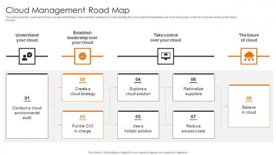 This slide covers the roadmap for cloud management strategy implementation starting from understanding the cloud, establish leadership over cloud, taking over control on cloud and ending on the future of cloud Formulating a presentation can take up a lot of effort and time, so the content and message should always be the primary focus. The visuals of the PowerPoint can enhance the presenters message, so our Cloud Management Road Enhancing Workload Efficiency Through Cloud Architecture Portrait Pdf was created to help save time. Instead of worrying about the design, the presenter can concentrate on the message while our designers work on creating the ideal templates for whatever situation is needed. Slidegeeks has experts for everything from amazing designs to valuable content, we have put everything into Cloud Management Road Enhancing Workload Efficiency Through Cloud Architecture Portrait Pdf This slide covers the roadmap for cloud management strategy implementation starting from understanding the cloud, establish leadership over cloud, taking over control on cloud and ending on the future of cloud
