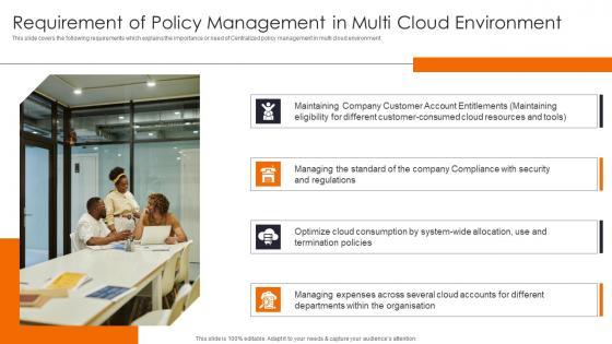 This slide covers the following requirements which explains the importance or need of Centralized policy management in multi cloud environment Do you have to make sure that everyone on your team knows about any specific topic I yes, then you should give Requirement Policy Management Enhancing Workload Efficiency Through Cloud Architecture Themes Pdf a try. Our experts have put a lot of knowledge and effort into creating this impeccable Requirement Policy Management Enhancing Workload Efficiency Through Cloud Architecture Themes Pdf. You can use this template for your upcoming presentations, as the slides are perfect to represent even the tiniest detail. You can download these templates from the Slidegeeks website and these are easy to edit. So grab these today This slide covers the following requirements which explains the importance or need of Centralized policy management in multi cloud environment