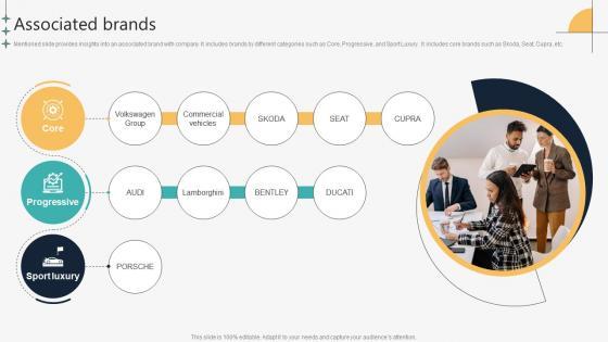 Mentioned slide provides insights into an associated brand with company. It includes brands by different categories such as Core, Progressive, and Sport Luxury. It includes core brands such as Skoda, Seat, Cupra, etc.Find a pre-designed and impeccable Associated Brands Automotive Manufacturing Company Profile CP SS V. The templates can ace your presentation without additional effort. You can download these easy-to-edit presentation templates to make your presentation stand out from others. So, what are you waiting for Download the template from Slidegeeks today and give a unique touch to your presentation. Mentioned slide provides insights into an associated brand with company. It includes brands by different categories such as Core, Progressive, and Sport Luxury. It includes core brands such as Skoda, Seat, Cupra, etc.
