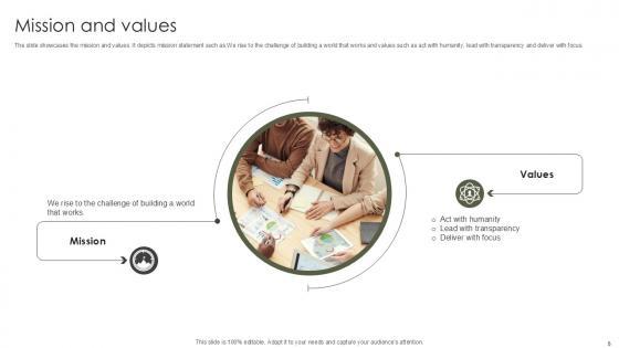 The slide showcases the mission, vision and values. It also includes vision such as driven by customer, industry leader, cutting edge and values like trust, exactness and passion for customers. This modern and well-arranged Mission Values And Principles Vehicle Manufacturer Company Profile PPT Slide CP SS V provides lots of creative possibilities. It is very simple to customize and edit with the Powerpoint Software. Just drag and drop your pictures into the shapes. All facets of this template can be edited with Powerpoint, no extra software is necessary. Add your own material, put your images in the places assigned for them, adjust the colors, and then you can show your slides to the world, with an animated slide included. The slide showcases the mission, vision and values. It also includes vision such as driven by customer, industry leader, cutting edge and values like trust, exactness and passion for customers.