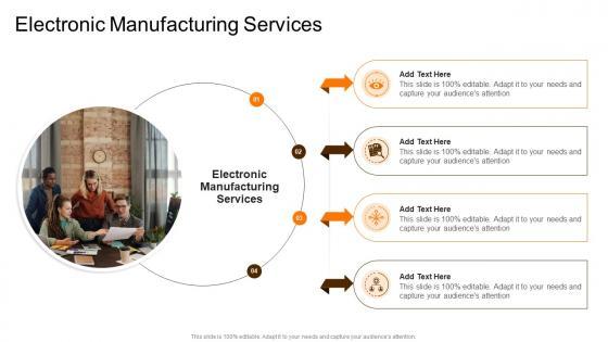 Introducing our well-designed Electronic Manufacturing Services In Powerpoint And Google Slides Cpb. This PowerPoint design presents information on topics like Electronic Manufacturing Services. As it is predesigned it helps boost your confidence level. It also makes you a better presenter because of its high-quality content and graphics. This PPT layout can be downloaded and used in different formats like PDF, PNG, and JPG. Not only this, it is available in both Standard Screen and Widescreen aspect ratios for your convenience. Therefore, click on the download button now to persuade and impress your audience. Our Electronic Manufacturing Services In Powerpoint And Google Slides Cpb are topically designed to provide an attractive backdrop to any subject. Use them to look like a presentation pro.