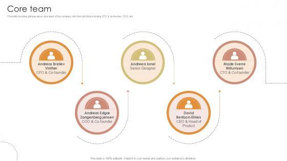 This slide provides glimpse about core team of the company with their job titles including CFO and co-founder, COO, etc. Do you have to make sure that everyone on your team knows about any specific topic I yes, then you should give Core Team Furniture Manufacturing Firm Investor Funding Ppt Slide a try. Our experts have put a lot of knowledge and effort into creating this impeccable Core Team Furniture Manufacturing Firm Investor Funding Ppt Slide. You can use this template for your upcoming presentations, as the slides are perfect to represent even the tiniest detail. You can download these templates from the Slidegeeks website and these are easy to edit. So grab these today This slide provides glimpse about core team of the company with their job titles including CFO and co-founder, COO, etc.