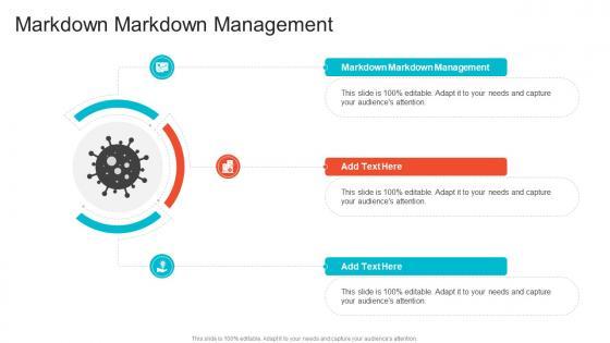 Introducing our well designed Markdown Markdown Management In Powerpoint And Google Slides Cpb. This PowerPoint design presents information on topics like Markdown Markdown Management. As it is predesigned it helps boost your confidence level. It also makes you a better presenter because of its high quality content and graphics. This PPT layout can be downloaded and used in different formats like PDF, PNG, and JPG. Not only this, it is available in both Standard Screen and Widescreen aspect ratios for your convenience. Therefore, click on the download button now to persuade and impress your audience. Our Markdown Markdown Management In Powerpoint And Google Slides Cpb are topically designed to provide an attractive backdrop to any subject. Use them to look like a presentation pro.